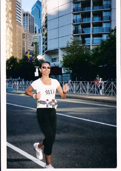 My girl, Denine, and I both signed up and started training in May 2004. Our endurance was negligible at best. Being one of the world’s most non-athletic individuals, I could barely run a quarter of a mile at that point. But I committed to the training program, running alone 3 days per week and with the training group every Saturday- rain or shine! We completed the Philadelphia Distance Run (a half marathon, which is 13.1 miles) in September 2004. I managed to run 10 miles straight without stopping… only because I had to go to the bathroom really bad, and all the port-a-potties I passed were disgusting. So I kept running, hoping to find a half-way decent “facility” (never found one, by the way). By the time I reached the 10th mile, I gave myself a break and started walking (HUGE mistake! It’s hard to start back up once you stop. Momentum is key!). I thought my legs were going to fall off and I’m pretty sure that would have been far less painful… but I managed to cross that finish line anyway. Two months later (November 21, 2004), Denine and I ran the Philly Marathon (the full 26.2 miles). It took me nearly the entire 6 hours allotted to complete the race, but I did it. And Denine recently finished her 2nd half-marathon. God bless her!!